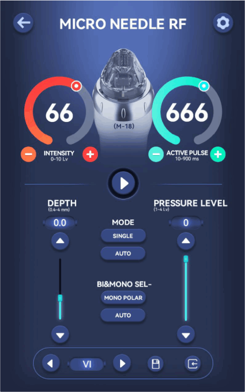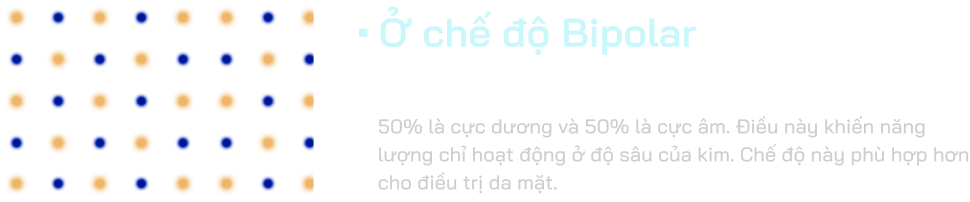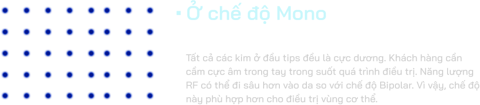 Vacuum RF Microneedle tích hợp hai chế độ phát năng lượng RF: Mono và Bipolar, mang lại tính linh hoạt