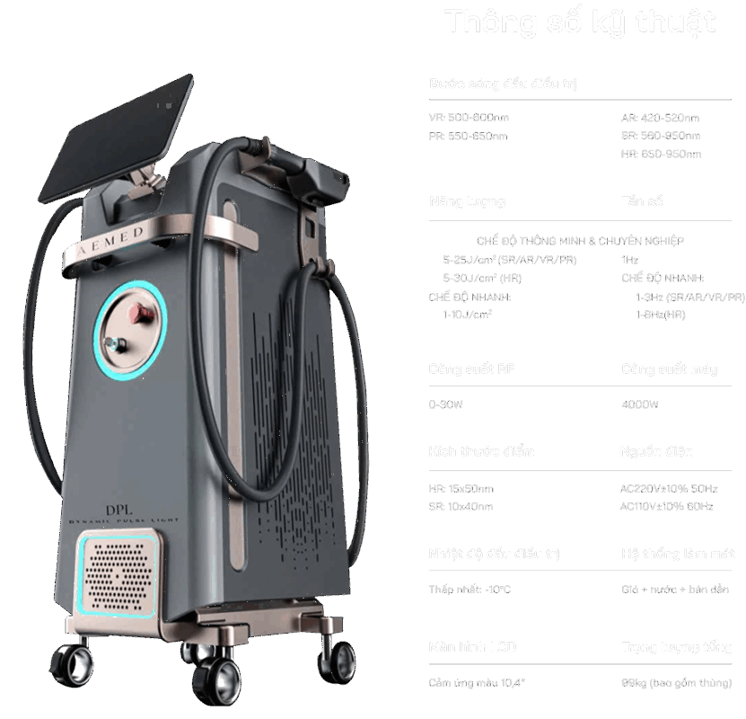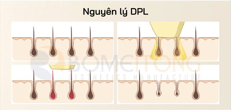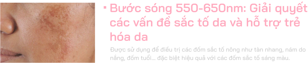 sáng quang phổ hẹp 100nm. Nhờ tập trung năng lượng tối ưu tại melanin, oxy và hemoglobin, DPL